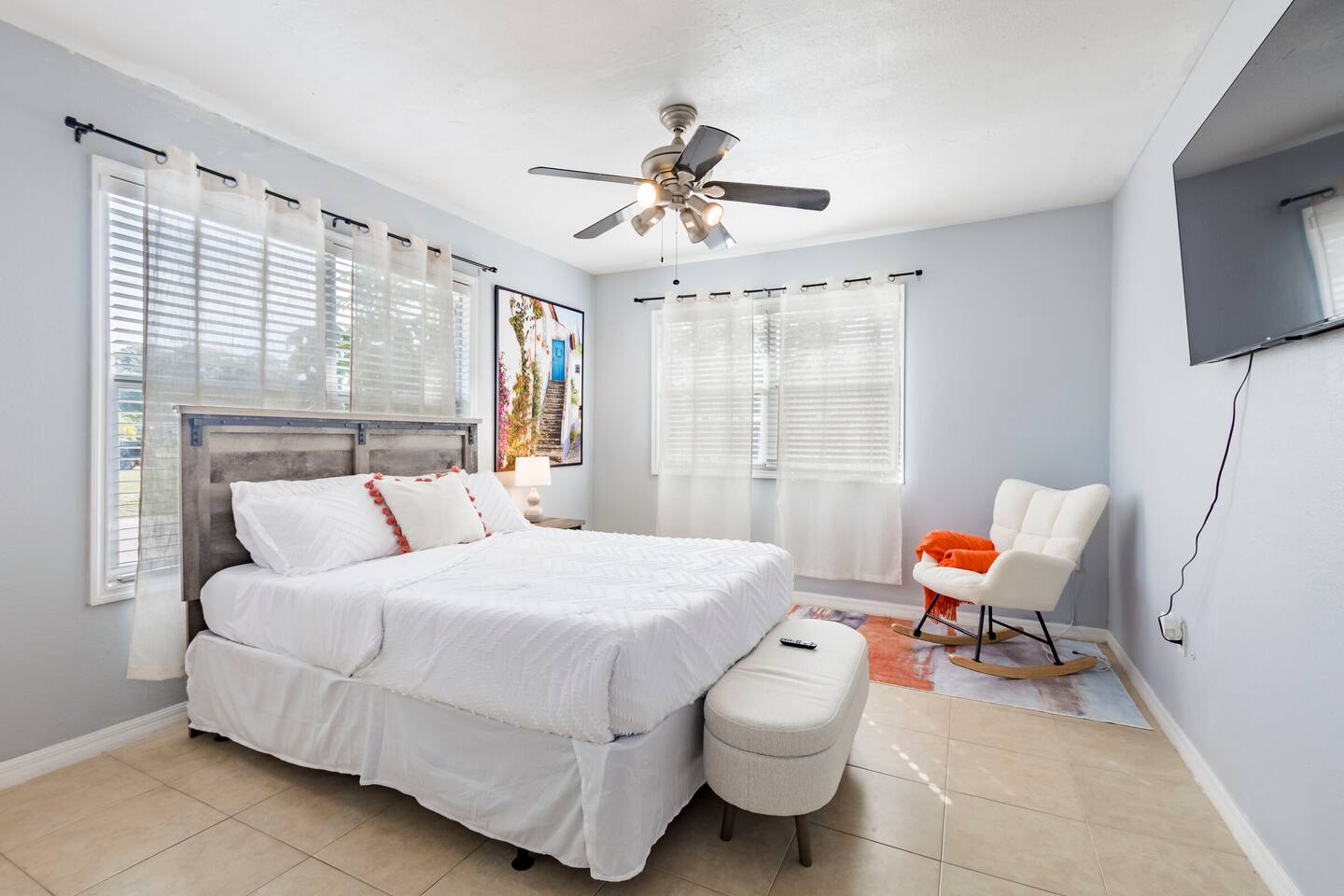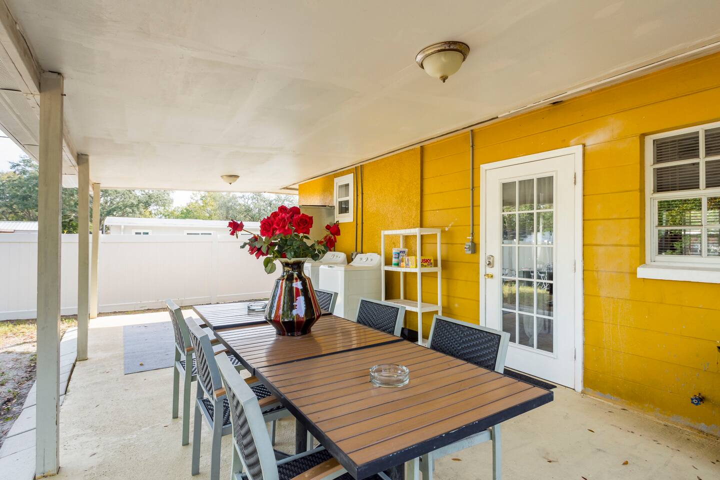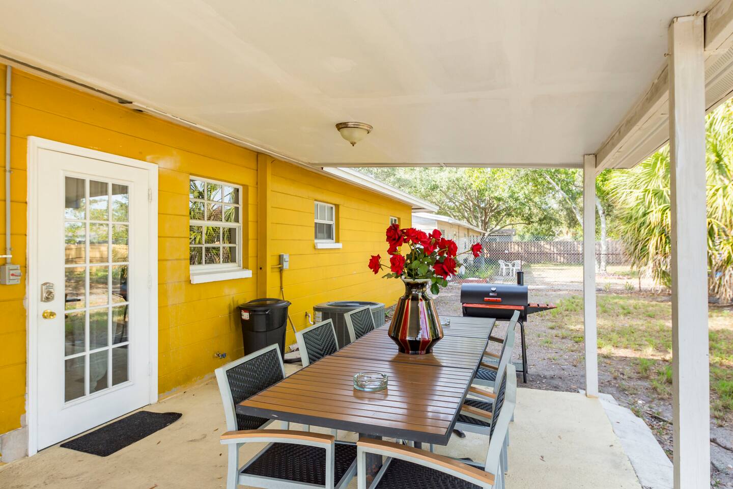 Gather together inside for a movie, family dinner, or game night! Or let's enjoy the private back yard for smores, a cookout, or a good game of corn hole! Our home is fully equipped with all you'll need during your stay. From comfortable beds, completely stocked toiletries to smart TVs and free high-speed internet. All the while, assuring a safe environment with our 24/7 safety cameras and pad locked doors. Book now and experience the best Tampa has to offer!! This 4-bedroom 2-bathroom home in South Tampa has even more to offer. You can enjoy the stunning Florida weather with our outdoor dining, family-oriented yard games and beautiful fire-pit. This home truly has something for everyone! Book today to create your newest lasting memories! Keypad: Assuring safety and keyless arrival. Living Room: Inviting comfort for morning coffee, binge-watching tv, and many laughable moments. Kitchen/Dining: The heart of the home with the latest appliances prepared to welcome all. ❥Keurig ❥Toaster ❥Microwave ❥Oven & Stove ❥Pots & Pans ❥ Utensils Bedrooms: Rest up here either in our 2 Queen Sized Bedrooms or in our double twin bedroom. Also, you can rest up in the room with our perfectly placed futon, giant bean bag, and indoor fireplace. There is a kid’s pack in play placed in the closet for accommodation of parents traveling with a baby or toddler. Placed inside the closets as well are extra blankets and storage bins for your clothing. Bathrooms: Professionally cleaned & stocked with fresh towels and toiletries. Amenities: Family games, Smart TVs, High-speed Wi-Fi, books and central A/C. Outdoor: Private Backyard, Dining Area, Charcoal Grill, Electric Fire-pit, and Washer/Dryer set. Unforgettable memories are guaranteed here! 🏝🏝🏝